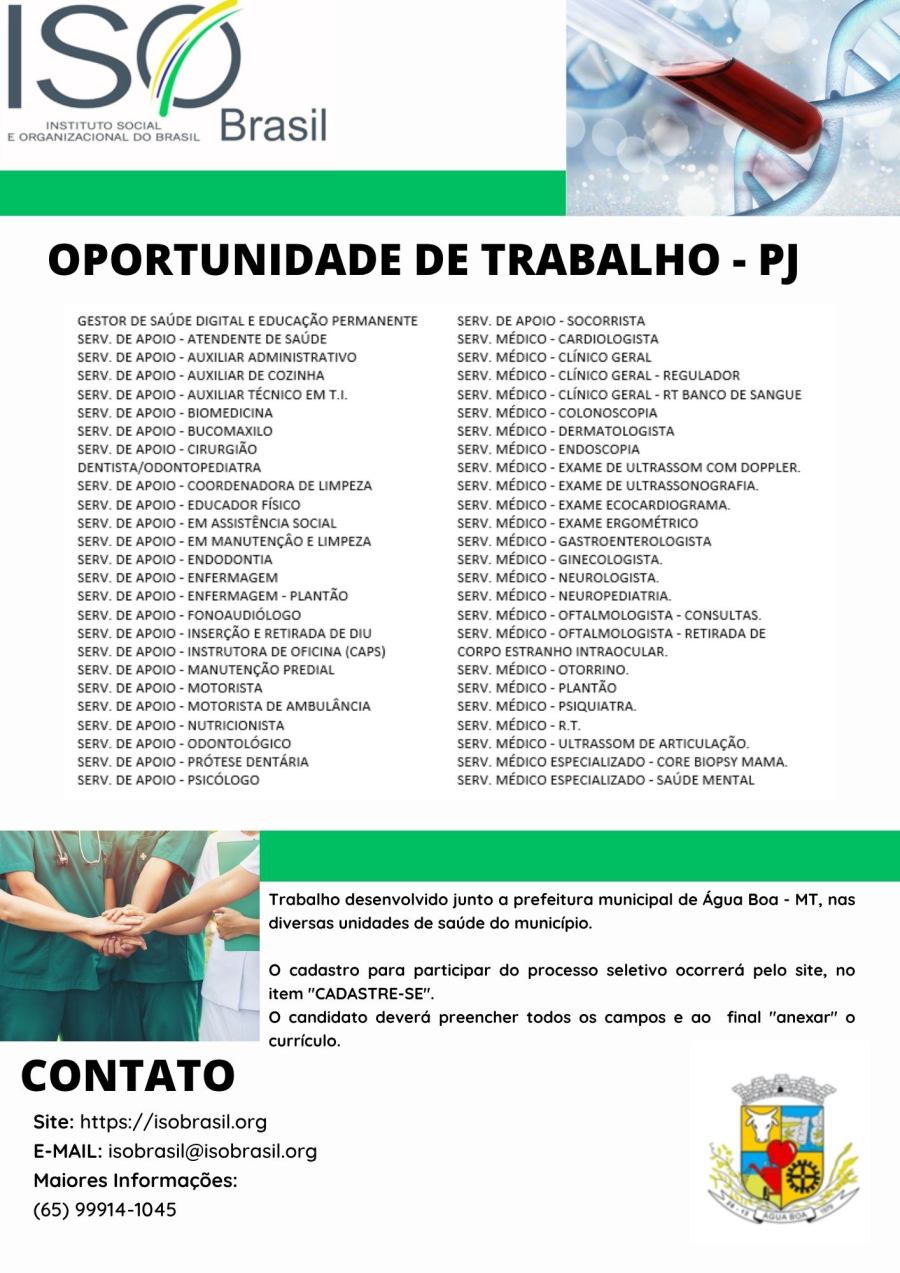 Trabalho desenvolvido junto a prefeitura municipal de Água Boa - MT, nas diversas unidades de saúde do município.