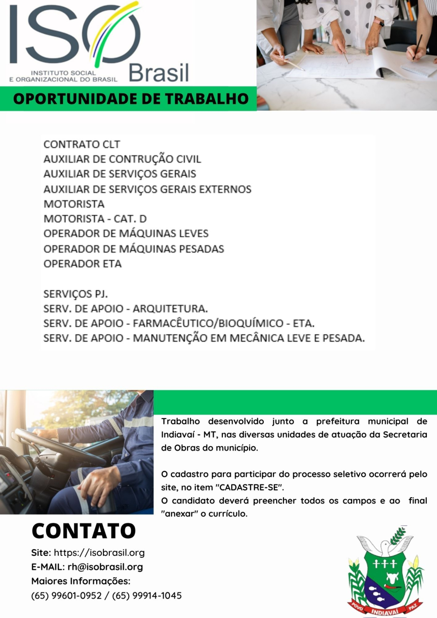 Trabalho desenvolvido junto a prefeitura municipal de Indiavaí - MT, nas diversas unidades de atuação da Secretario de Obras do município.